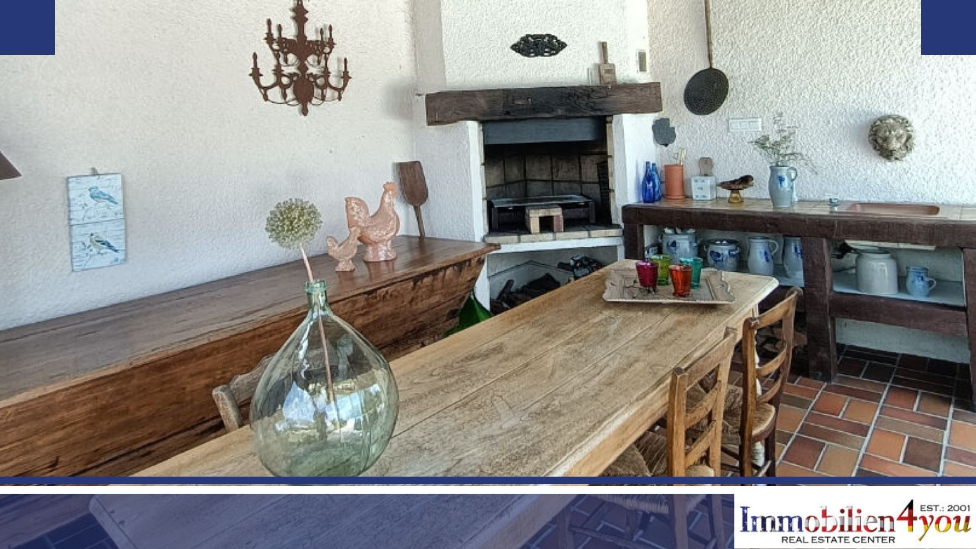 Das Haus liegt auf einem großzügigen Grundstück von 5.527 m² und bietet einen eigenen Garten und eine Terrasse ergänzt wird. Der Swimmingpool lädt zum Entspannen ein. Das „Poolhaus“ im Stil eines Wintergartens mit Kamin bietet zusätzliche Wärme und Gemütlichkeit.