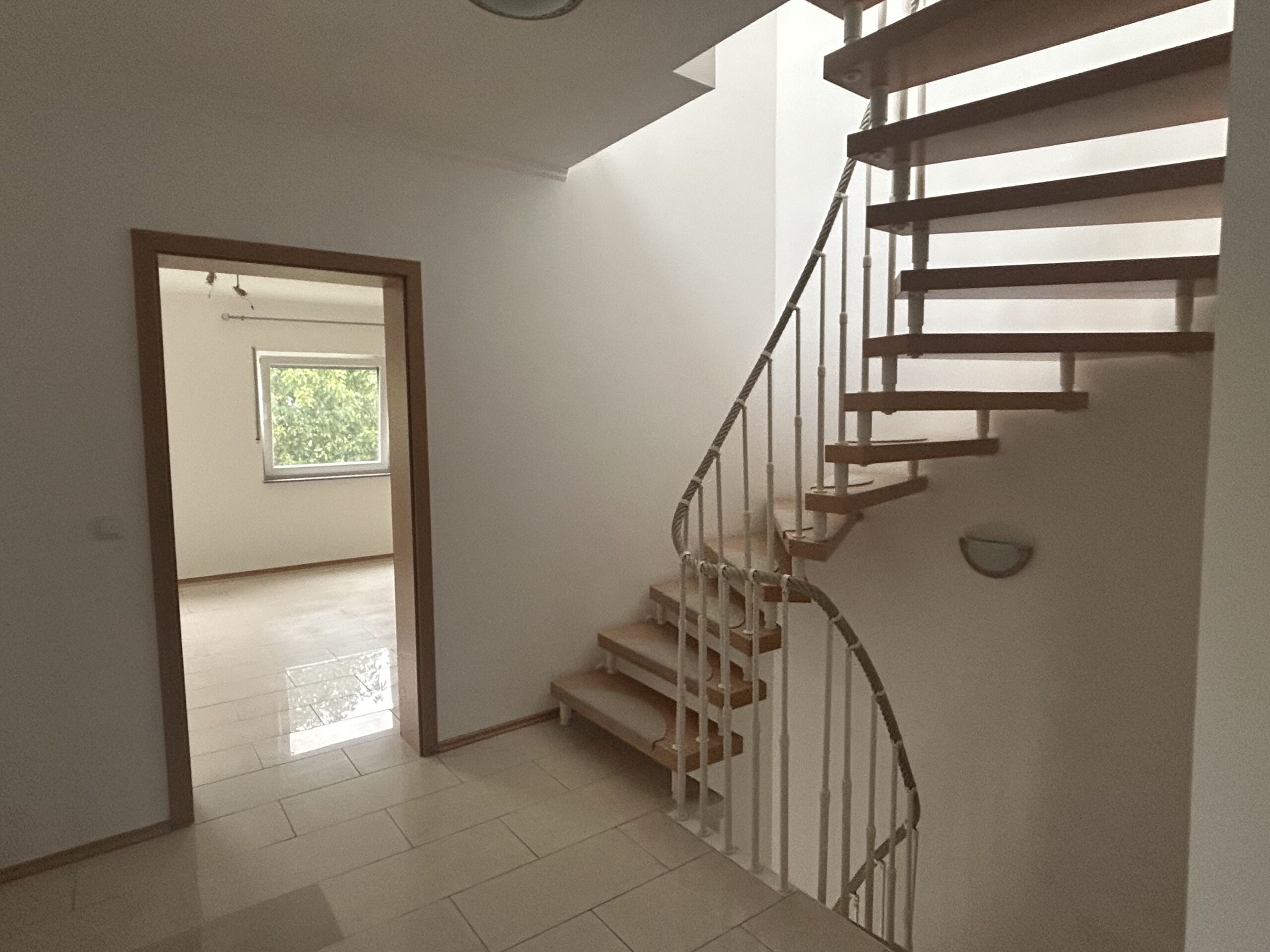 This beautiful semi-detached house close to Ramstein Air Base offers 176m² of living space. On the ground floor, there is an open-plan living and dining area with direct access to the terrace and garden, as well as a pantry and guest toilet. The upper floor features 3 bedrooms and a bathroom . In the attic is another room as well as a bathroom. A garage, carport, and parking spaces complete the offering
